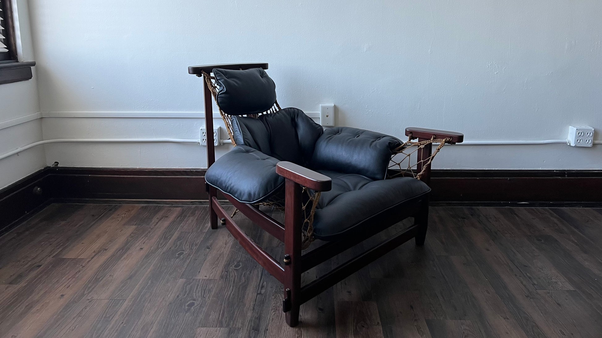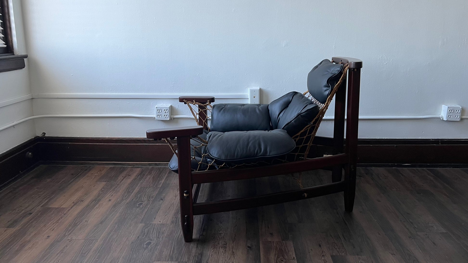 This exquisite vintage Jangada chair by renowned designer Jean Gillon is the perfect addition to any home. Handcrafted with premium rosewood and halyard rope, this chair is both sturdy and stylish. It features an ergonomically designed seat, which offers exceptional comfort and support, while its subtle curves and beautiful finish add a touch of elegance to any room. The chair's unique design is further highlighted by its woven halyard rope, which adds a textural element to the piece. Whether you're looking for a statement piece for your living room or a comfortable chair for your office, this vintage Jangada chair is the perfect choice. Add a timeless touch of style to your home with this stunning piece.