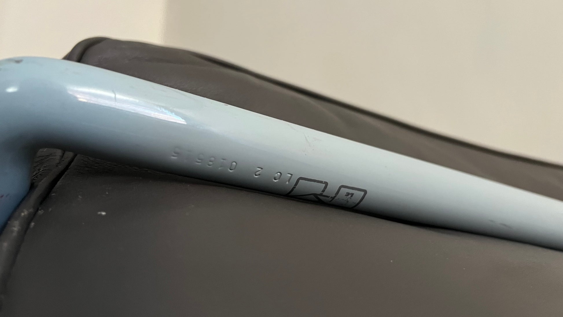 This contemporary example comes in the uncommon color way of blue with gray leather. The chair has been well used and carries more of a vintage appeal for only being approximately 10-20 years old. Please see photos for condition.
